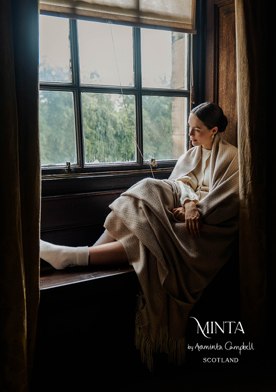 Scottish textile designer Araminta creates beautiful pieces at her Atelier in Duddingston. The team hand weave luxury tartan, tweed and alpaca products, and also offer a mill-woven range, working with rural artisan mills across Scotland.
